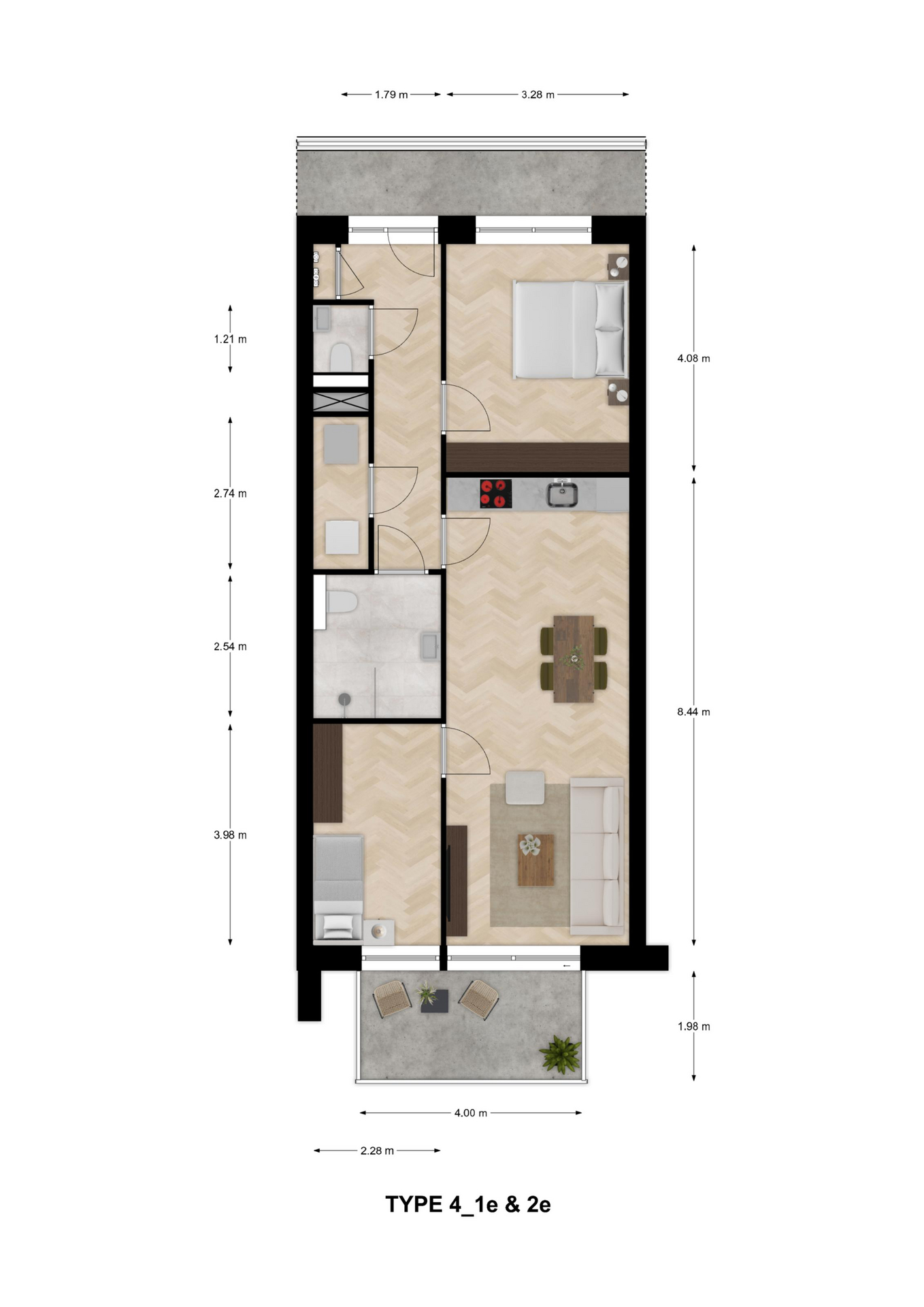 Type 4 – Ruim en licht appartement met twee slaapkamers en buitenruimte