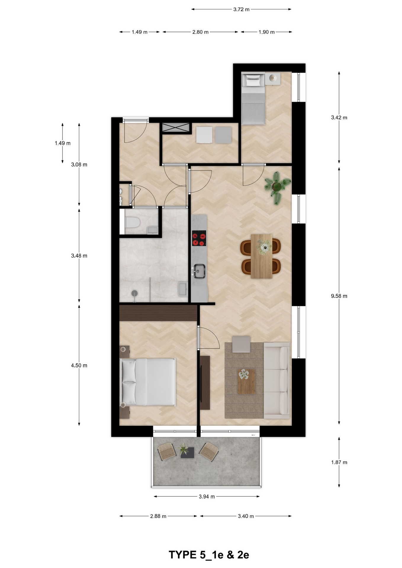 Type 5 – Slim ingedeeld hoekappartement met uitzicht op het Havenplein
