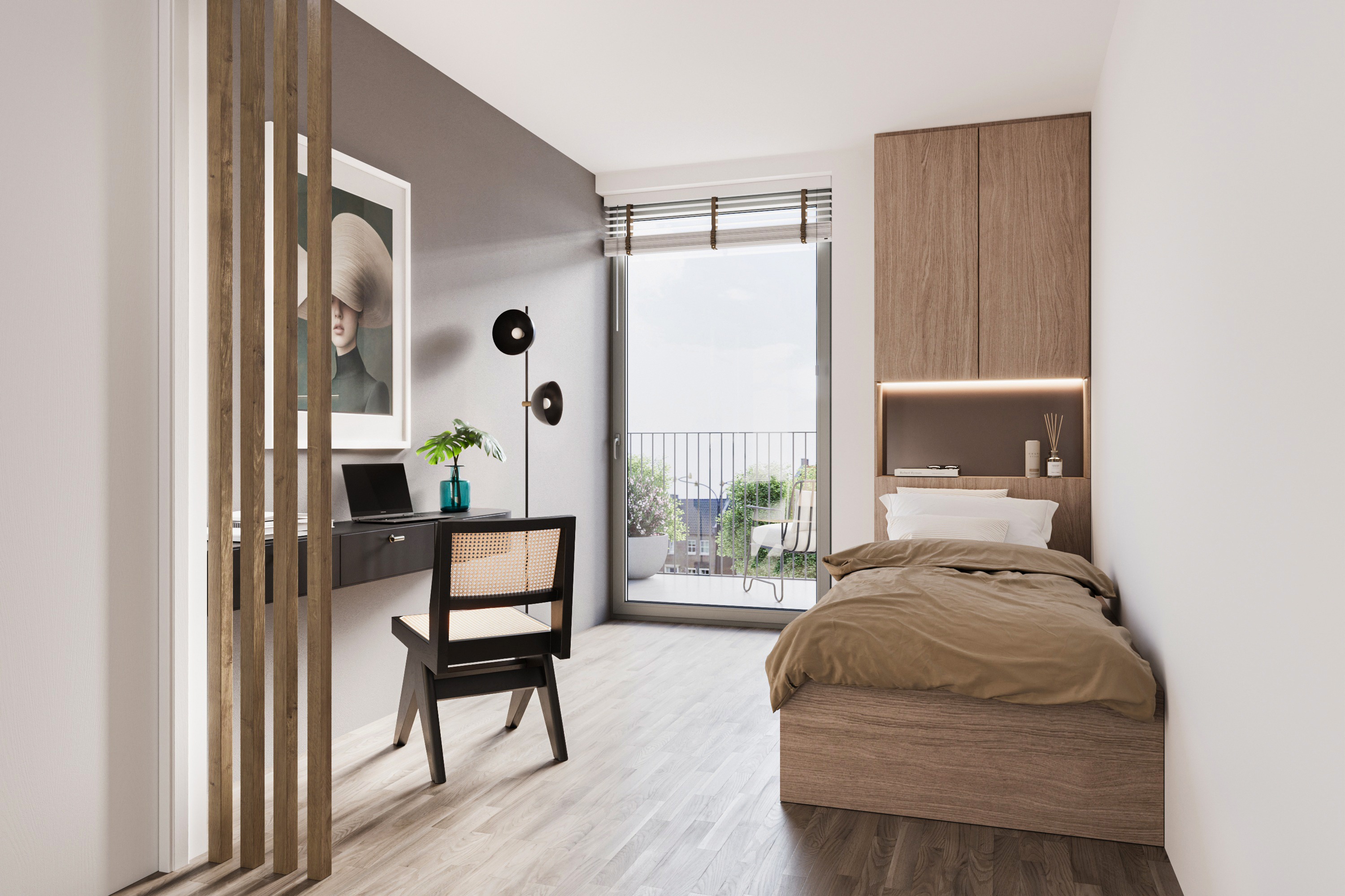 Binnen zorgt de open woonkeuken voor een warme en uitnodigende leefruimte die naadloos overloopt in de sfeervolle woonkamer, ideaal om te koken, eten en ontspannen samen te laten komen. Alle Type 2 appartementen zijn slim ingedeeld met zowel een apart toilet als een toilet in de badkamer, voor optimaal comfort en gemak.